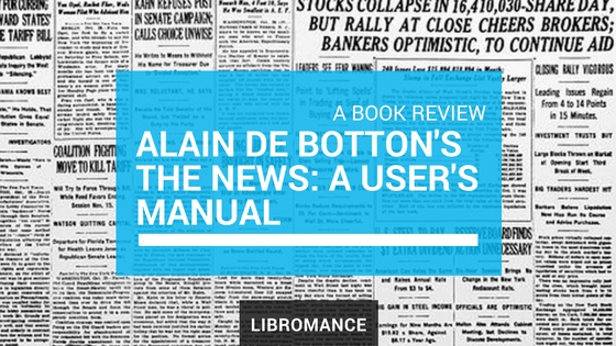 If you think that fake news is problematic, it may be the real news that actually falls short. This I learned after reading Alain de Botton’s The News: A User Manual (Shop your local indie bookstore), an exploration and analysis of the news we consume (and are given) on the daily: political, world, economic, celebrity, disaster, consumer.